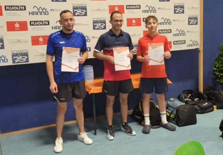 Bei den Herren war Florian Volz gleich in 2 Altersklassen vertreten und supererfolgreich. Am Samstag startete er in der D-Klasse und holte dort souverän den Titel. Am Sonntag trat er dann auch noch in der C-Klasse an. Dort spielte er groß auf, überstand nicht nur die Gruppenphase, sondern erreichte sogar das Finale, indem er hauchdünn mit 2:3 Sätzen unterlag. Martin Reichle ist bei den Herren A leider in der Gruppenphase unglücklich ausgeschieden, holte aber gemeinsam mit dem Rißegger Alexander Härle den Titel in der Doppelkonkurrenz.