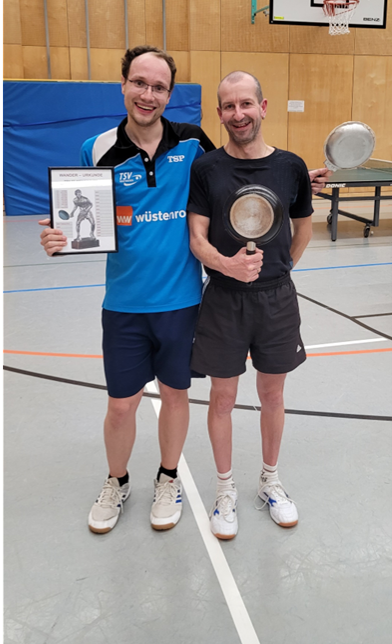 Nach den Gruppenspielen lagen Udo und Tobi (hinter Alfi und Timo) jeweils auf Platz 2, jedoch im Halbfinale setzten sich beide gegen ihre Kontrahenten knapp mit 2:1 durch. Im Endspiel zeigte Udo zwar das aggressivere Spiel, da Tobi aber die Bälle oft retournieren konnte, war er am Ende trotzdem erfolgreich.